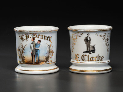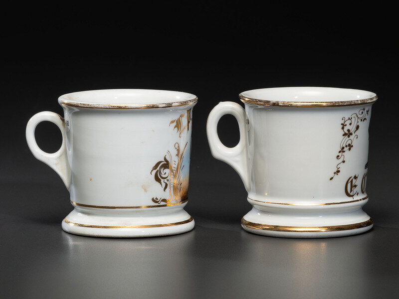 Two Porcelain Occupational Shaving Mugs of Sartorial Interest