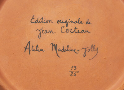 signed Jean Cocteau with Artist’s star sign (lower right); inscribed Edition originale de/Jean Cocteau/Atelier Madeline-Jolly and numbered 13/25 (underneath)