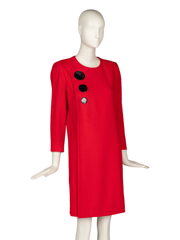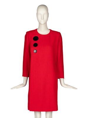 Pierre Cardin Haute Couture Red Dress with Vinyl Accents