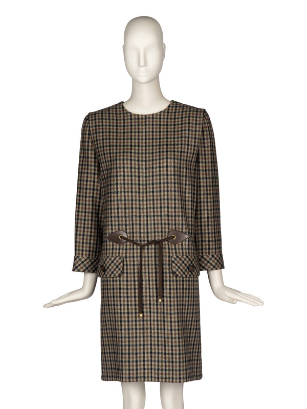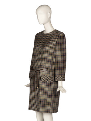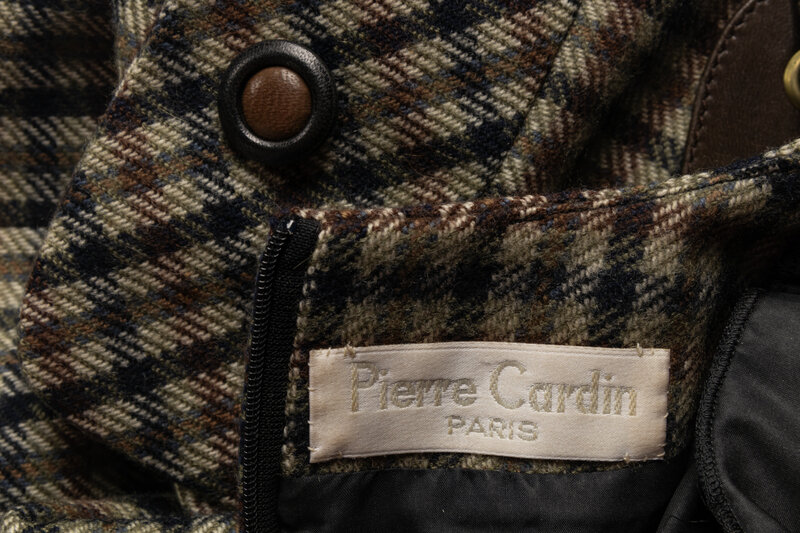 Pierre Cardin Haute Couture Plaid Dress With Leather Details