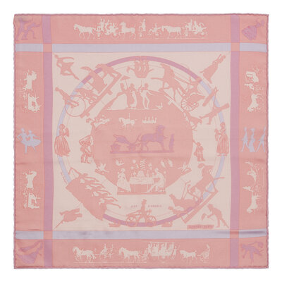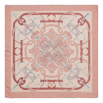 "Éperons d'or" Scarf 45 in printed silk twill. Features rolled and hand-stitched edges.