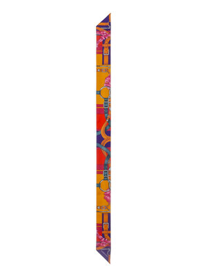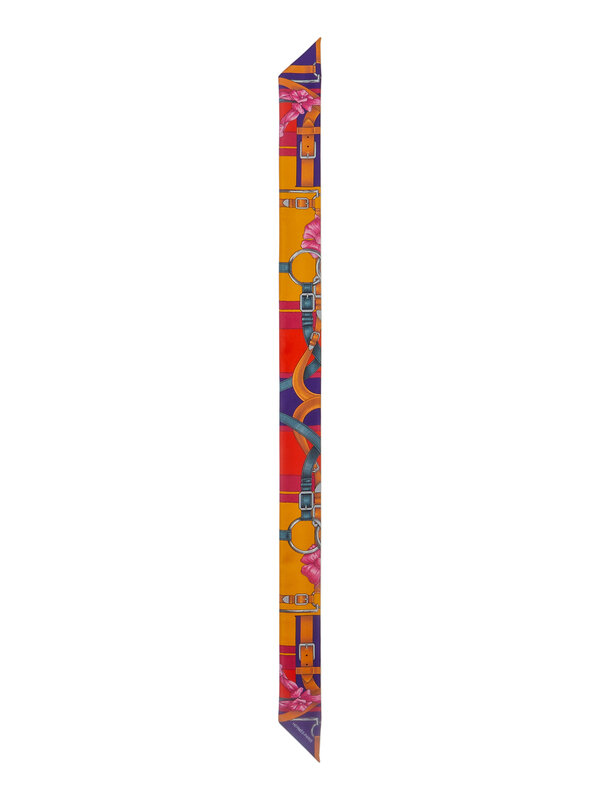 "Grand manège" Twilly Scarf in printed silk twill. Features rolled and hand-stitched edges.