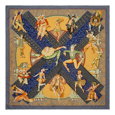 "Les ballets russes" Scarf 90 in printed silk twill. Features rolled and hand-stitched edges.