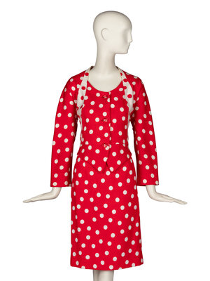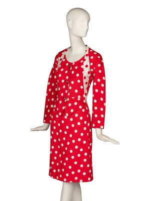 Geoffrey Beene Red Polka Dot Skirt Suit