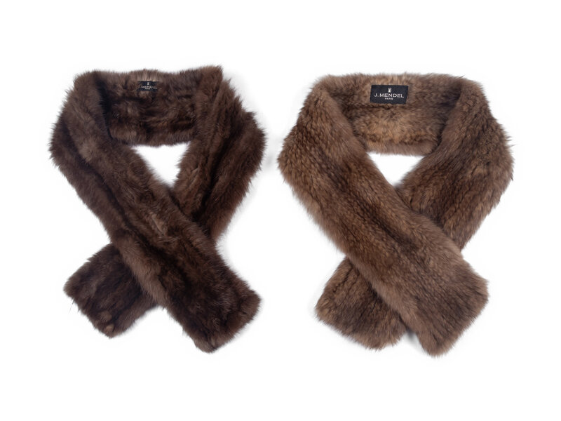 Two J. Mendel Knitted Sable Scarves