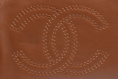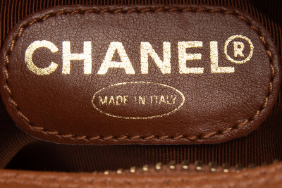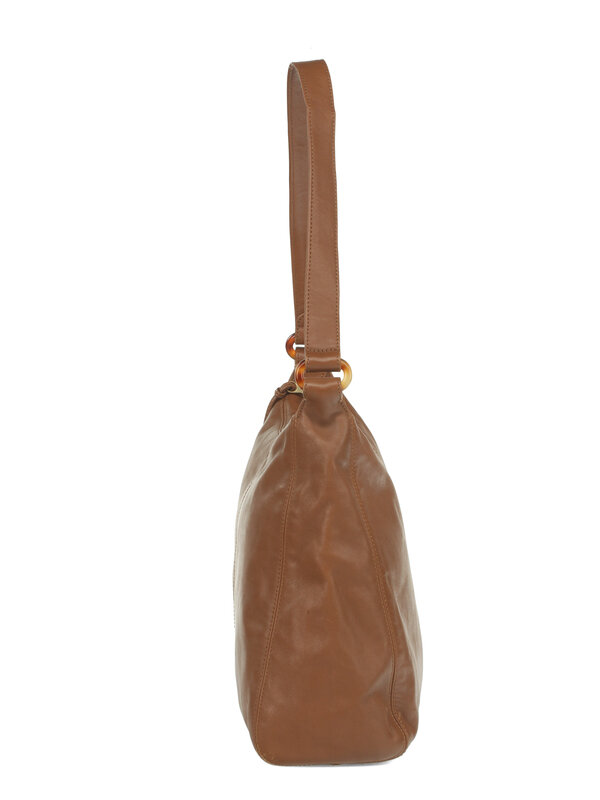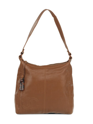Chanel Timeless Shoulder Bag in Brown Leather with Tortoiseshell-Effect Composite Accents. Zipper Closure and Shoulder Strap.