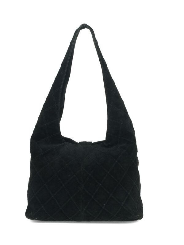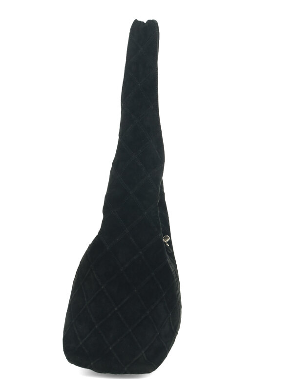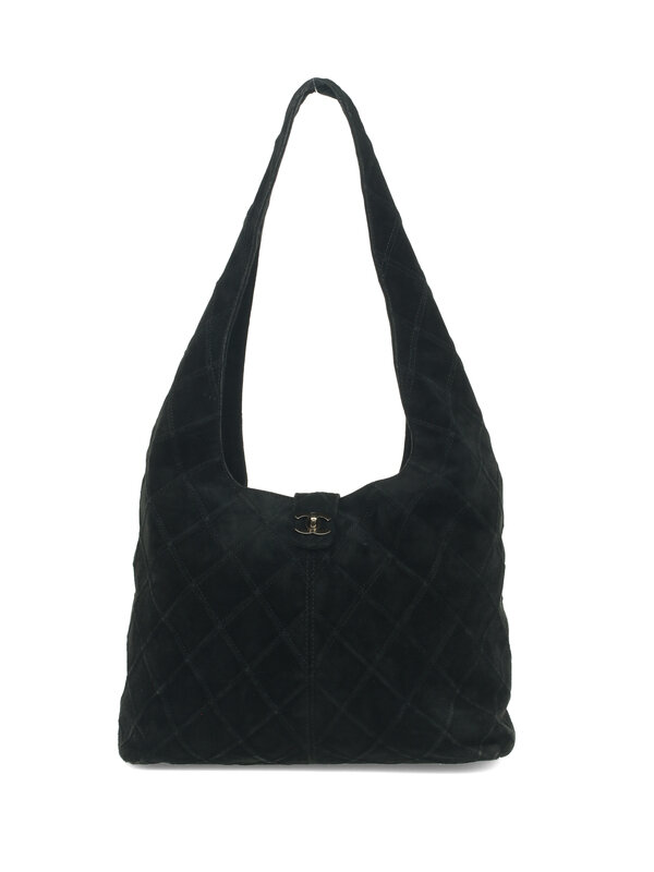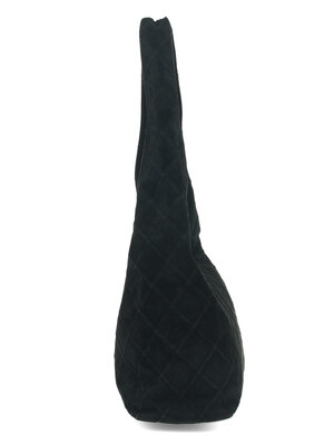Chanel Shoulder Hobo Bag in Quilted-Effect Black Suede with Silver-Tone Hardware. CC Turn-Lock Closure and Integrated Hobo Strap.