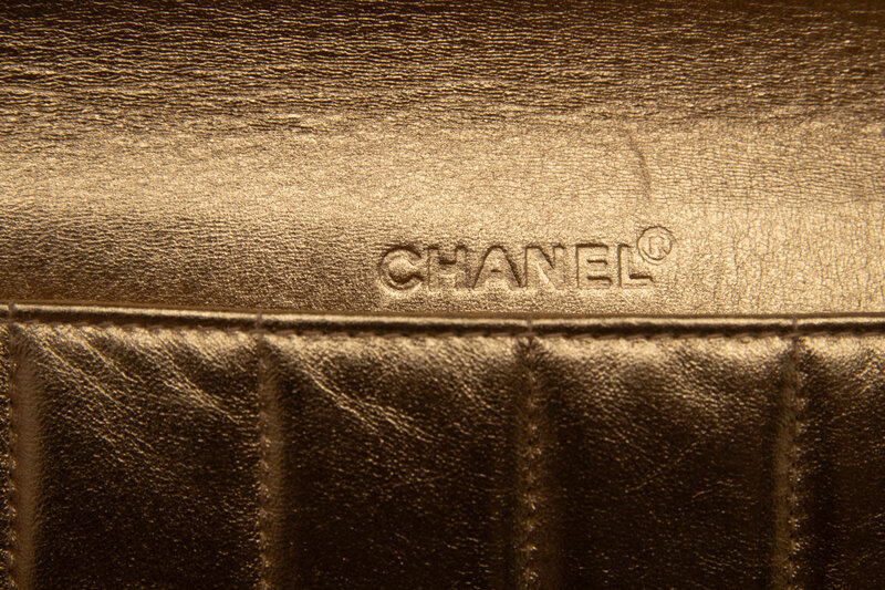 Chanel Chocolate Bar Shoulder Bag in Gold Lambskin
