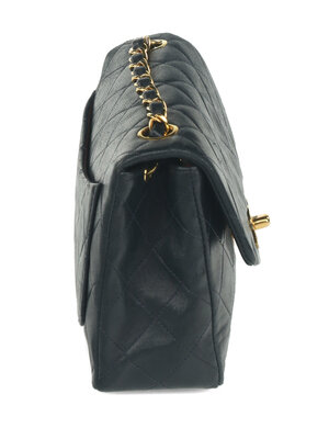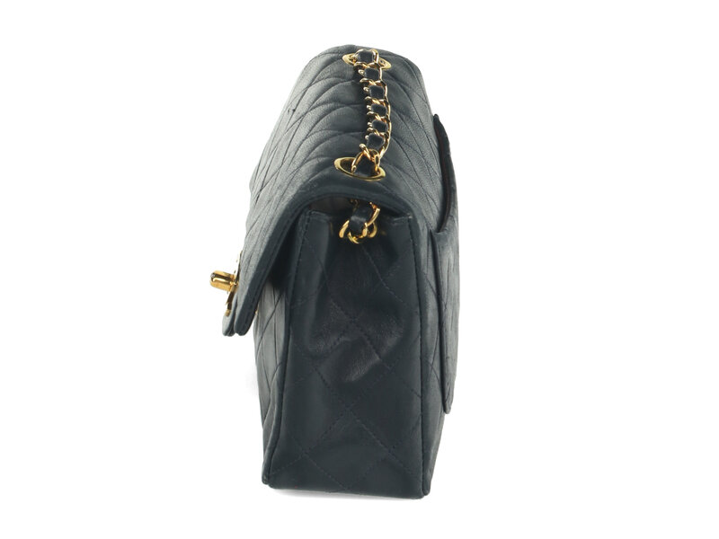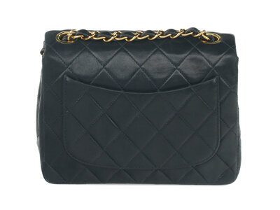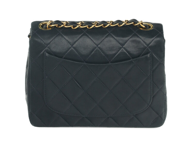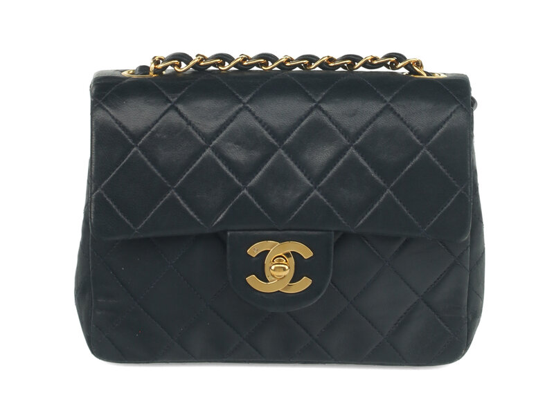 Chanel Mini Classic Single-Flap Shoulder Bag in Quilted Navy Lambskin with 24K Gold-Plated Hardware. CC Turn-Lock Closure and Interwoven Leather-Metal Chain.