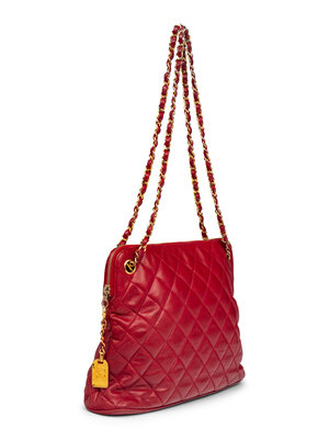 Chanel Shoulder Bag in Quilted Red Lambskin