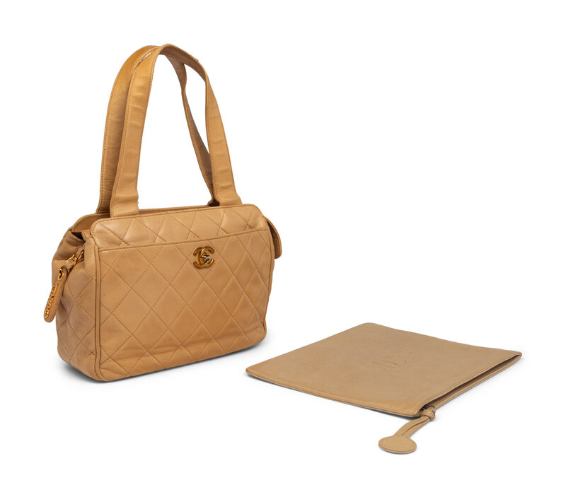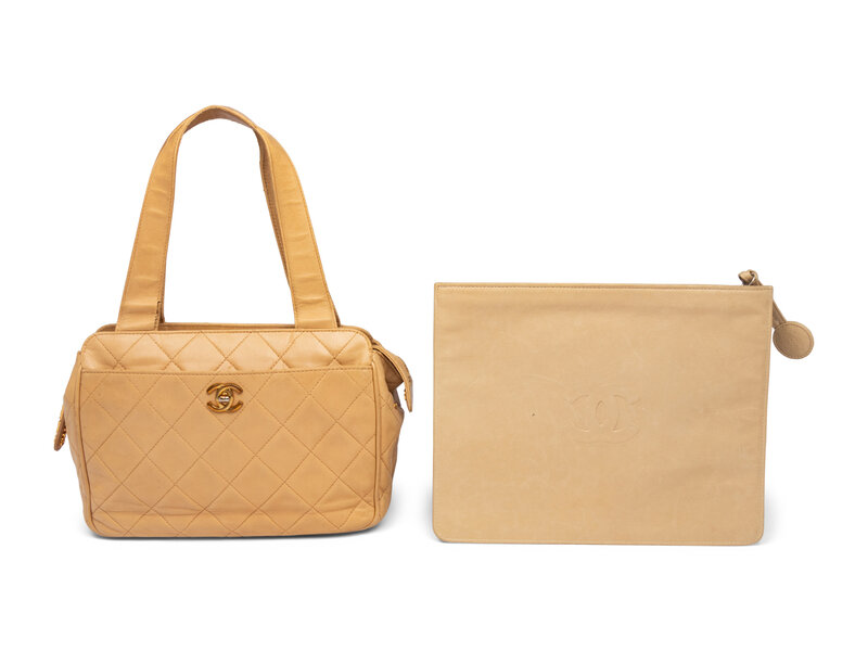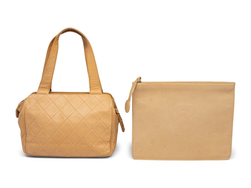 Chanel Tan Lambskin Handbag and Pouch