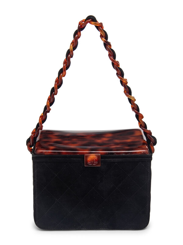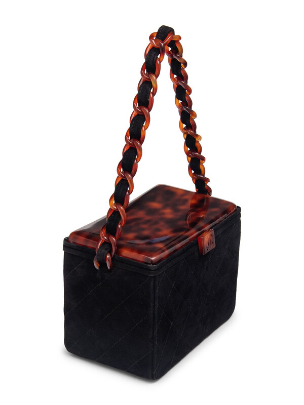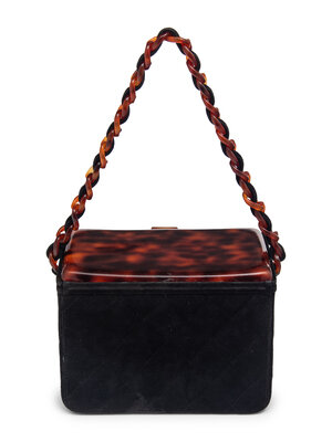Chanel Box Bag in Quilted Black Suede and Faux Tortoiseshell-Effect Bakelite.