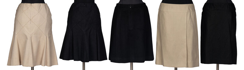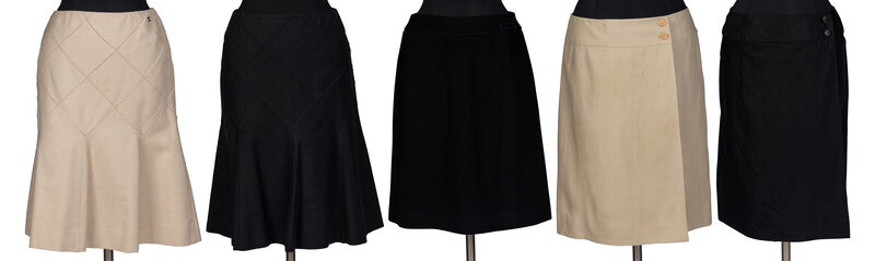 Raw silk twill skirt in black. Quilted-effect paneled construction. Slight flare. Cotton lining. Back zip closure.