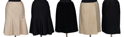 Raw silk twill skirt in beige. Quilted-effect paneled construction. Slight flare. Cotton lining. Back zip closure.