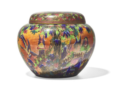 A Wedgwood Fairyland Lustreware 'Fairy Slide and White Pagodas' Malfrey Pot