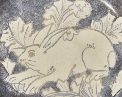 depicting a rabbit among foliage, probably a singular example painted by Therese Lessore; unsigned, the underside impressed Wedgwood.