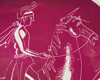 inscribed with central figure of a Trojan warrior on horseback; the underside printed Wedgwood/Etruria, England/Made in England; further impressed Wedgwood.