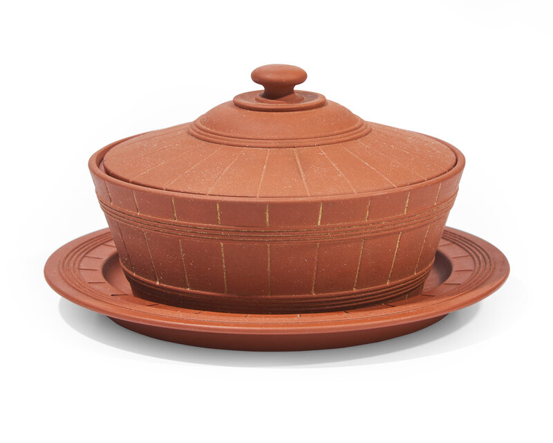 A Wedgwood Rosso Antico Butter Dish and Liner