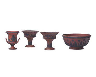 Four Wedgwood Rosso Antico and Black Basalt Articles