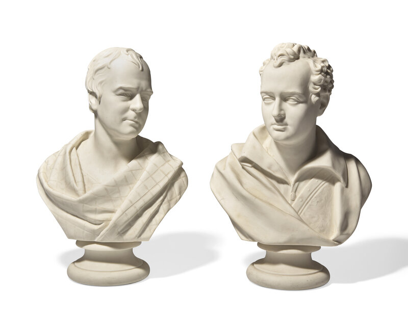 depicting Lord Byron and Sir Walter Scott; each impressed Wedgwood and E.W. Wyon. F. to reverse.