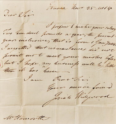 the letter from Mr. Wedgwood to Mr. W. Howorth notifying him that his salary would be 200 pounds per year.