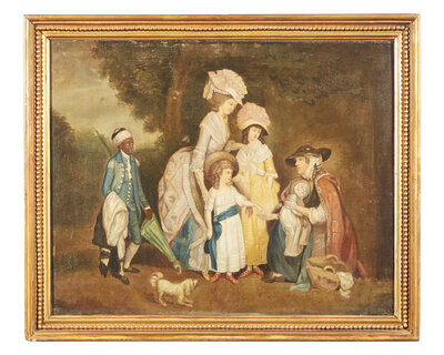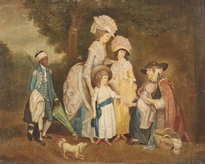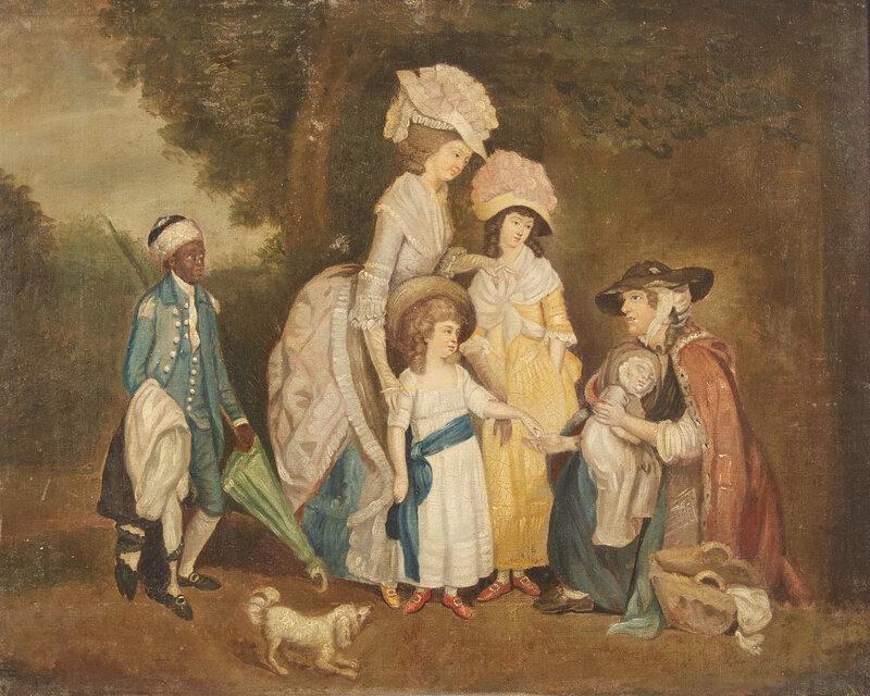 English School 18th century, After William Redmore Bigg (English, 1755-1828), A Lady and Her Children Relieving a Cottager