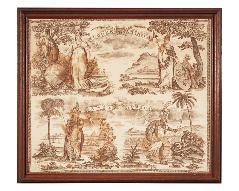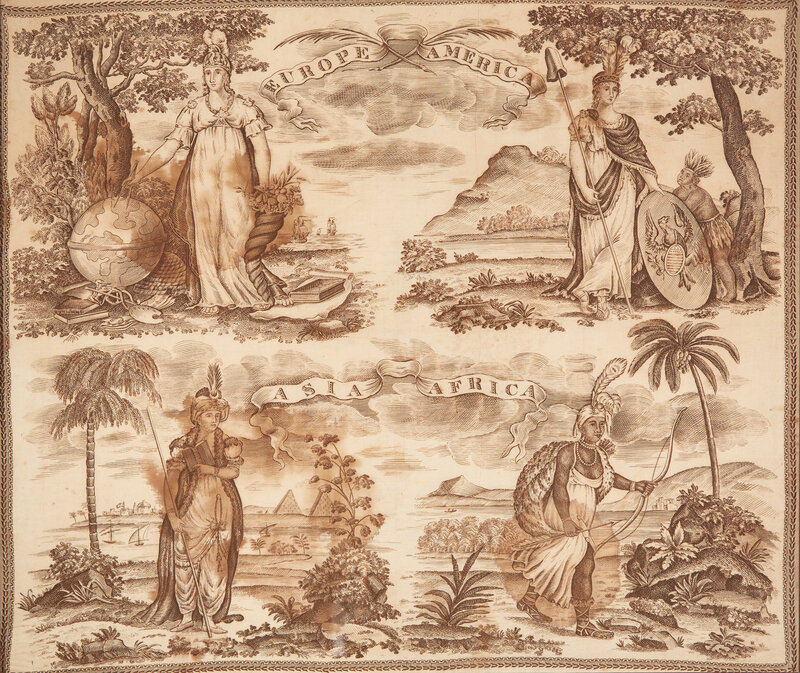 An English printed cotton handkerchief depicting the four continents, early 19th century