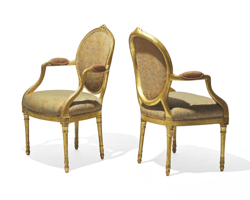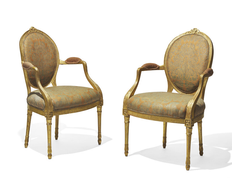 A pair of George III giltwood armchairs in the manner of John Linnell (1729-1796), circa 1790