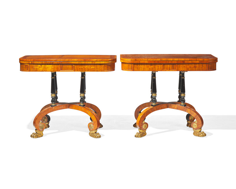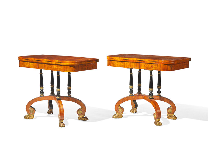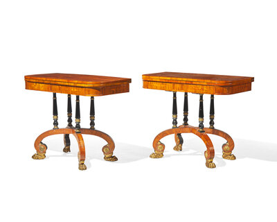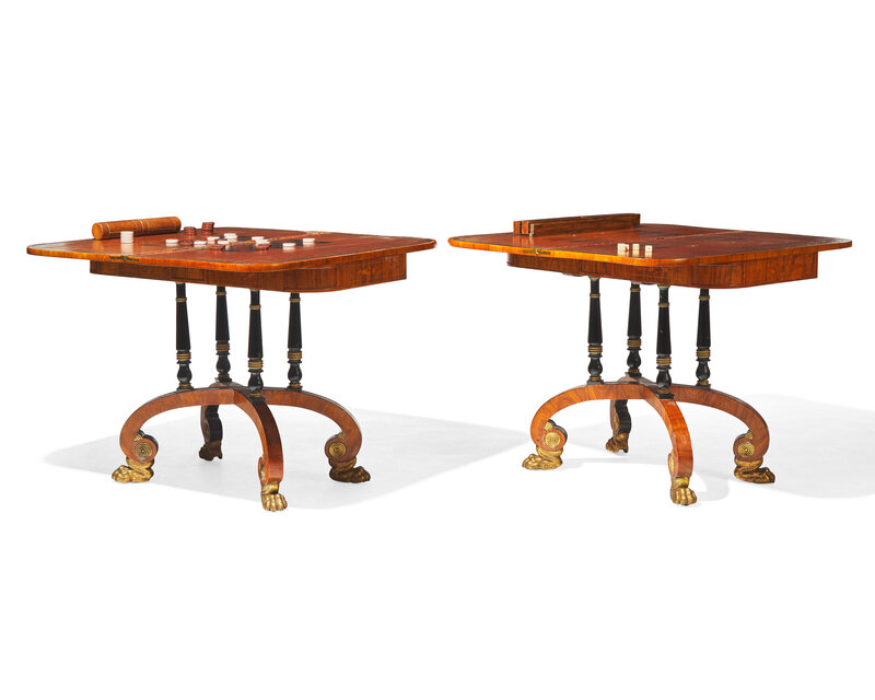 An impressive pair of Regency rosewood and parcel-gilt and ebonized games tables, circa 1820