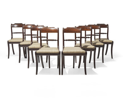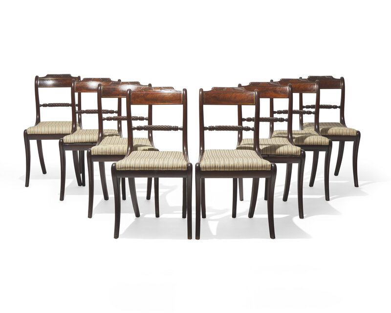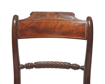 A set of eight Regency brass-inlaid mahogany side chairs, circa 1820
