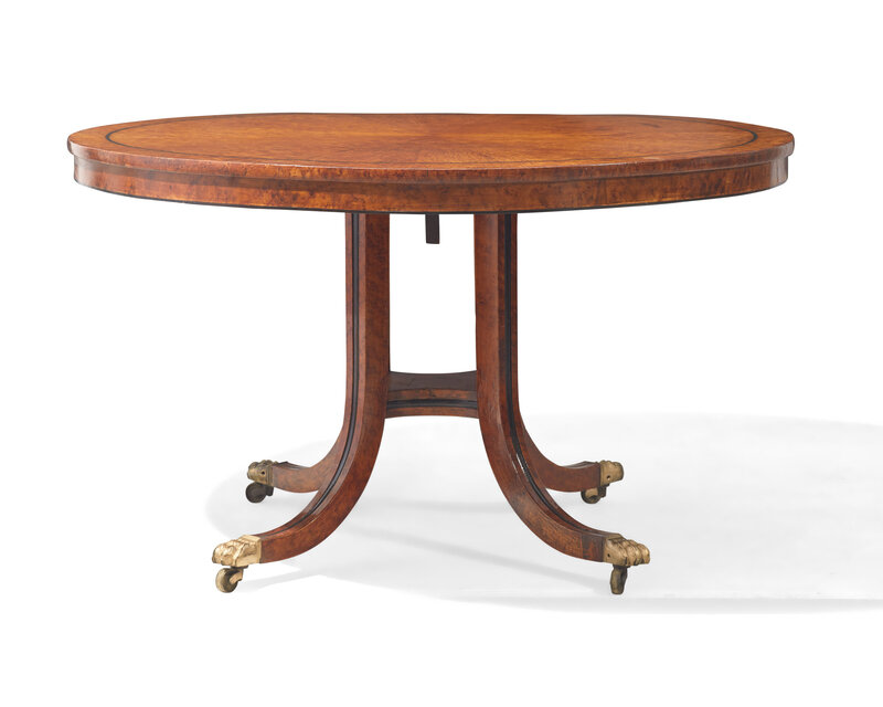 A Regency parcel-ebonized pollard oak breakfast table, circa 1820