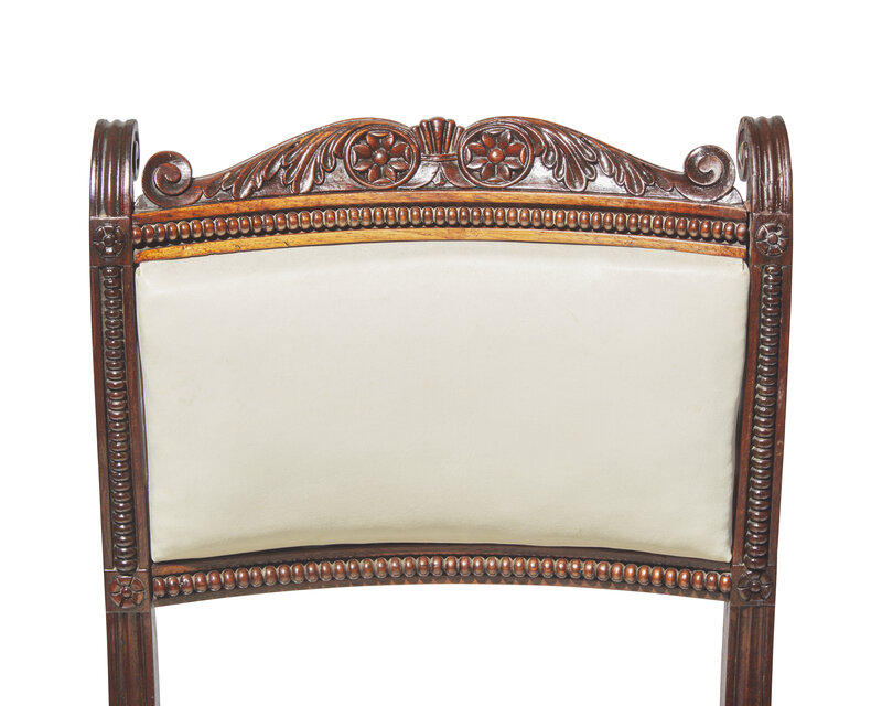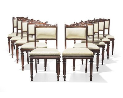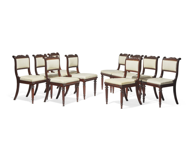 A rare set of ten Anglo-Indian Neoclassical carved hardwood side chairs, circa 1830-1840