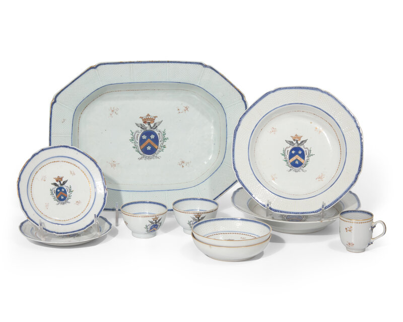 A group of ten Chinese Export porcelain tablewares from the "Reid Service," made for the French or English Market, circa 1770-1785