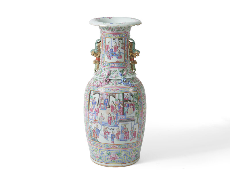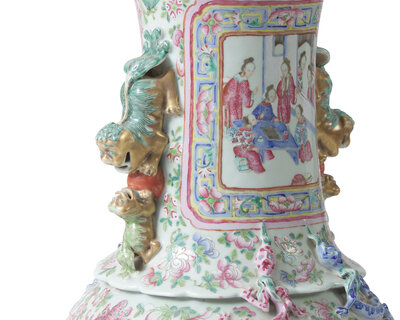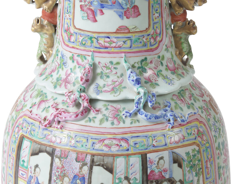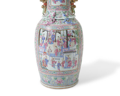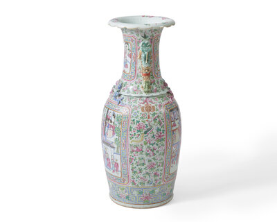 A very large Chinese export Famille Rose-decorated porcelain vase, 19th century