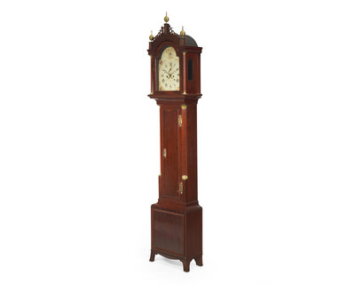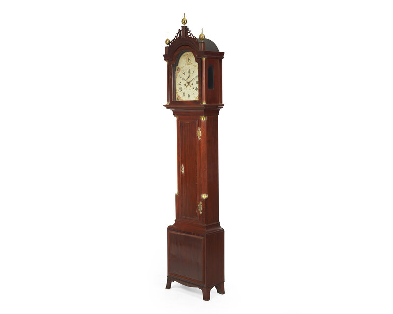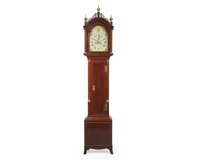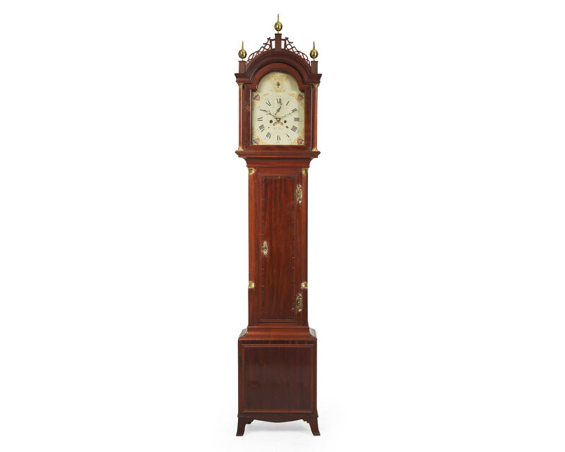 A Federal mahogany tall case clock, dial signed "Job White, Richmond," made in Massachusetts, marketed in Virginia, circa 1810