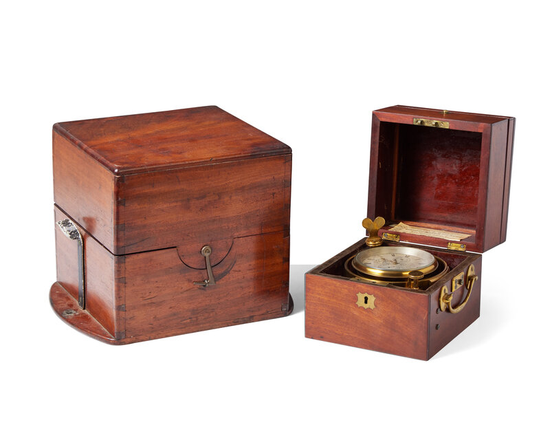 A brass and mahogany marine chronometer, Bliss & Creighton, New York, NY, retailed by Geary & Weale, Baltimore, MD, circa 1850s
