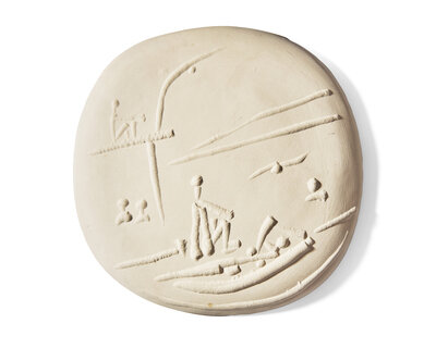 from the edition of 100, with the 'EMPREINTE ORIGINALE DE PICASSO,' 'EDITION PICASSO' and 'MADOURA PLEIN FEU' stamps on the underside