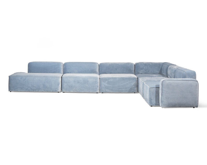 Rope Six-Piece Blue Velvet Modular Corner Sofa