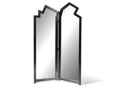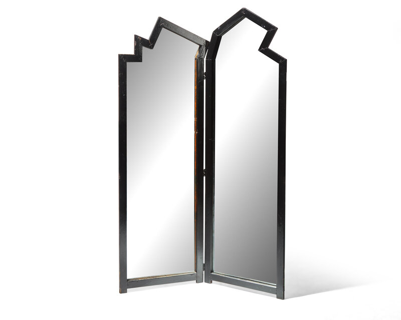 wood, mirrored glass.