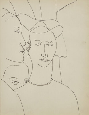 Ladies in Waiting Outside (Study from Piero della Francesca’s Discovery of the Wood of the True Cross and Meeting of Solomon and the Queen of Sheba), 1960-61