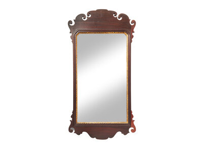 A Queen Anne Mahogany and Giltwood Looking Glass, Last Half 18th Century
