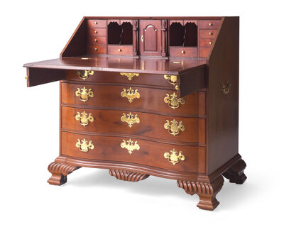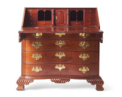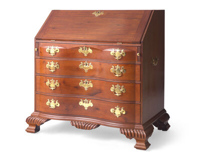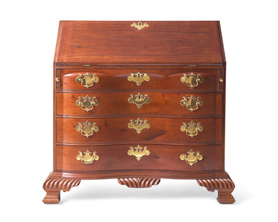 A Chippendale Carved Mahogany Reverse-Serpentine Slant-Front Desk, Attributed to William King (b. 1754 - after 1806) Salem, MA, Circa 1785