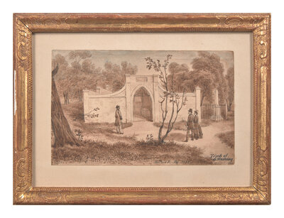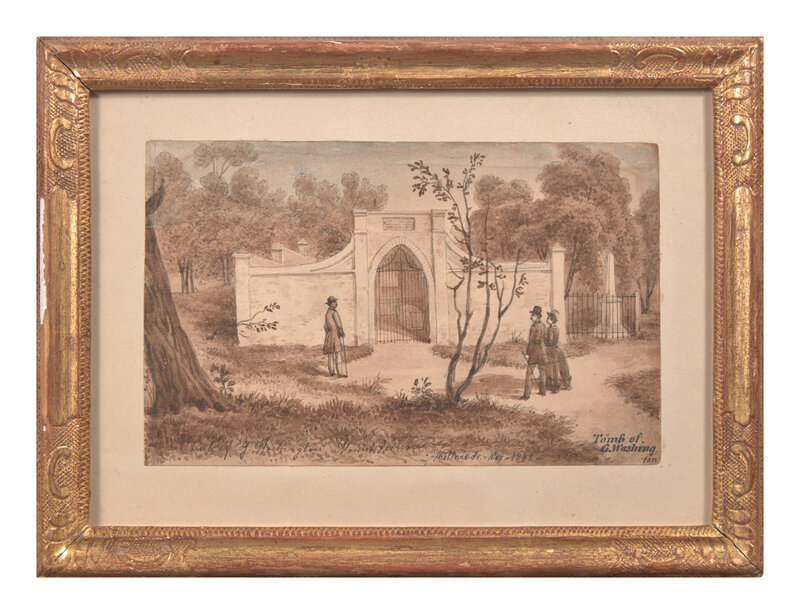 Inscribed, signed, and dated, "Tomb of G. Washington Mount Vernon/ Kollner, de. May 1848. Tomb of G. Washing/ton," watercolor and ink on paper, framed.