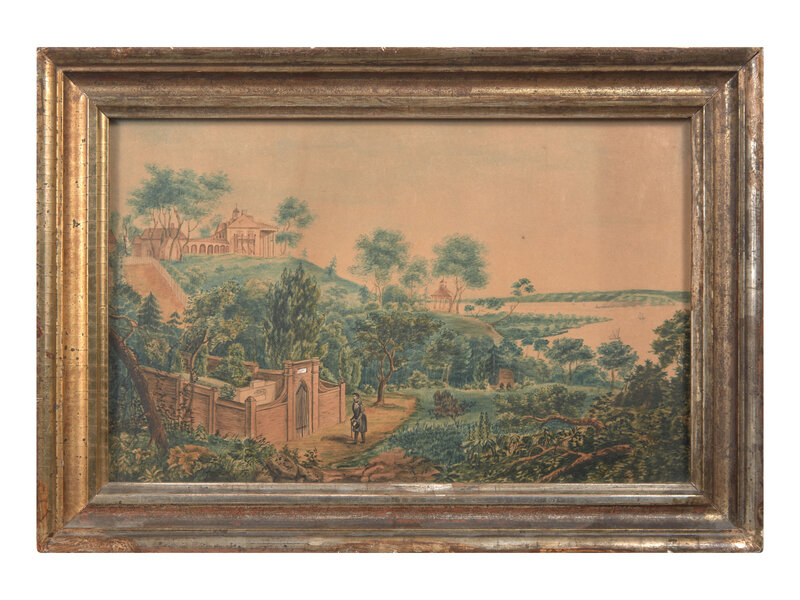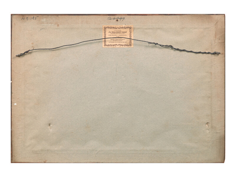 Watercolor and ink on paper, verso with printed label of The Old Print Shop, New York, framed.