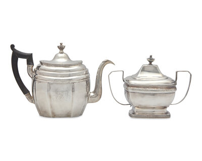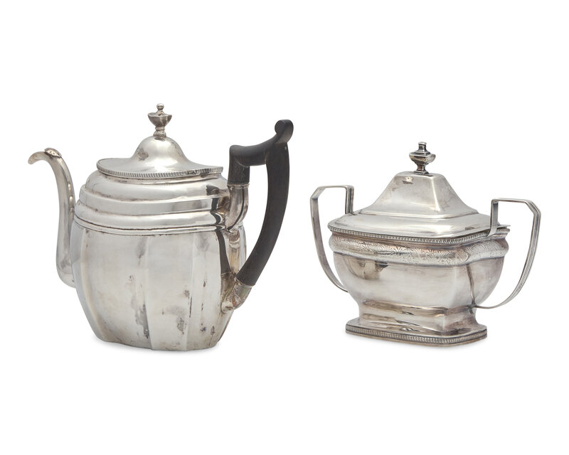 A Federal Silver Teapot and Covered Sugar Dish, Joseph Shoemaker (1765-1829) and Joseph Lownes (1758-1820), Philadelphia, PA, Circa 1800-1810