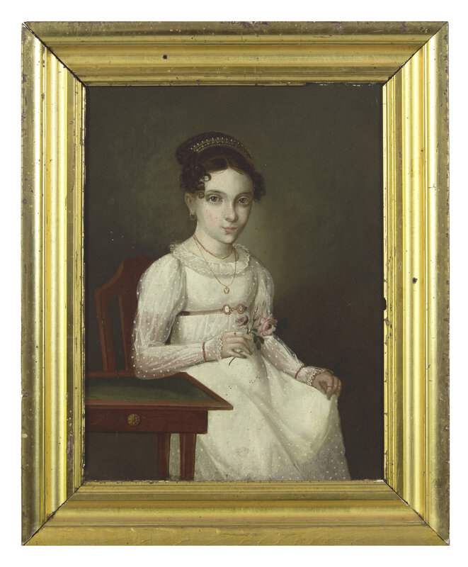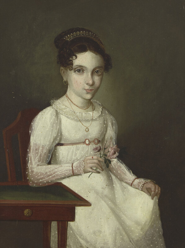 American School 19th Century, Portrait of a Young Lady Identified as Miss Altmayer of Mobile, AL, Circa 1815