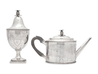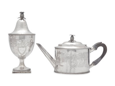 A Federal Silver Teapot and Covered Sugar Urn, Daniel Van Voorhis (1751-1824) & Garret Schanck (1768-1795), New York, NY, 1791-1793