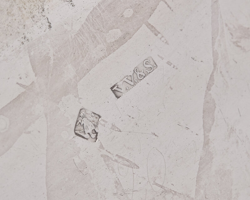 Both with pineapple-form finials, the bodies engraved with conforming be-ribboned and swagged shield-form cartouche, each bearing monogram, "JCL," marked to undersides.