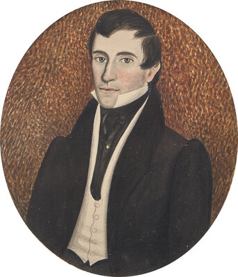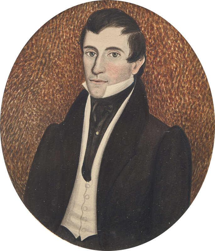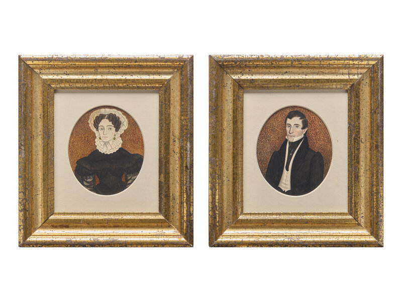American School 19th Century, A Pair of Portrait Miniatures Depicting a Lady and a Gentleman, Circa 1830