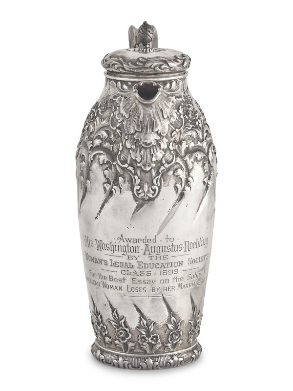 Engraved, "Awarded to Mrs. Washington Augustus Roebling/ By The/ Woman's Legal Education Society/ Class 1899/ For the Best Essay on the Subject/ What An American Woman Loses By Her Marriage To A Foreigner," marked to underside.